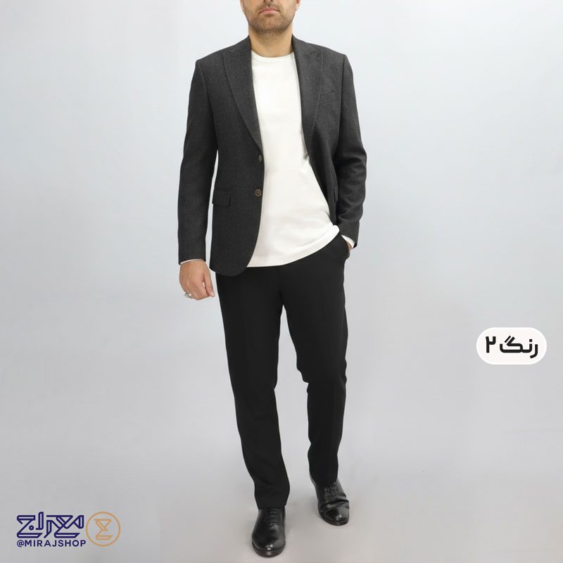 شلوار جین - برای استایل نیمه رسمی میتوان این بلوز مردانه را زیر کت مردانه بپوشید.