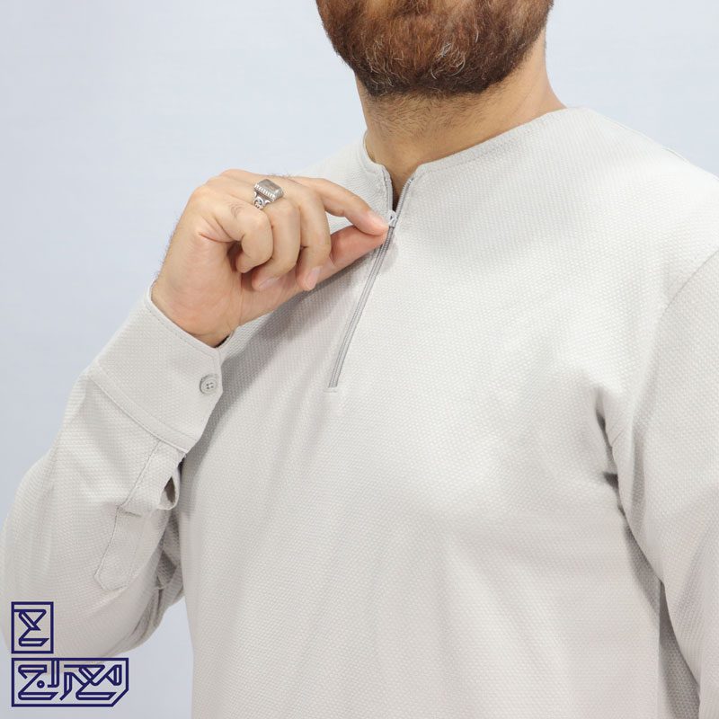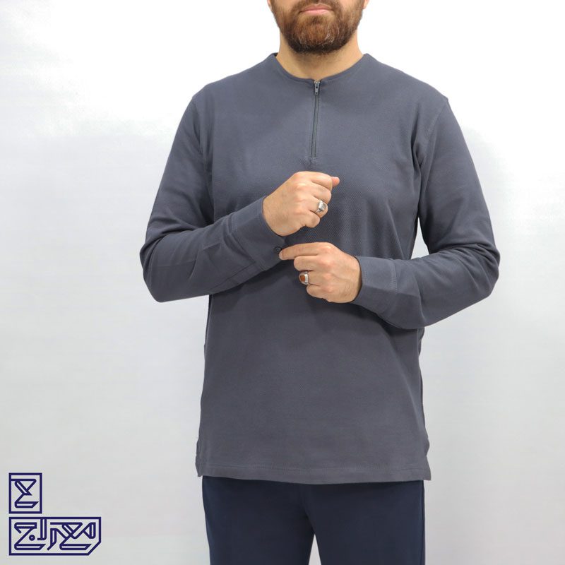 بلوز پنبه زنبوری یقه گرد نیم زیپ