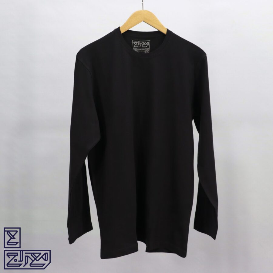 تیشرت پنبه مشکی آستین بلند یقه گرد