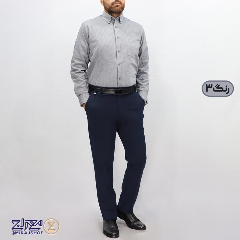 - برای استایل رسمیتر و اداری، این پیراهن را با یک شلوار پارچهای کلاسیک مردانه ست کنید.