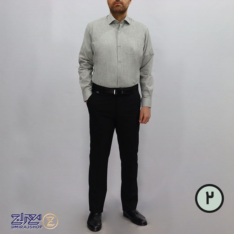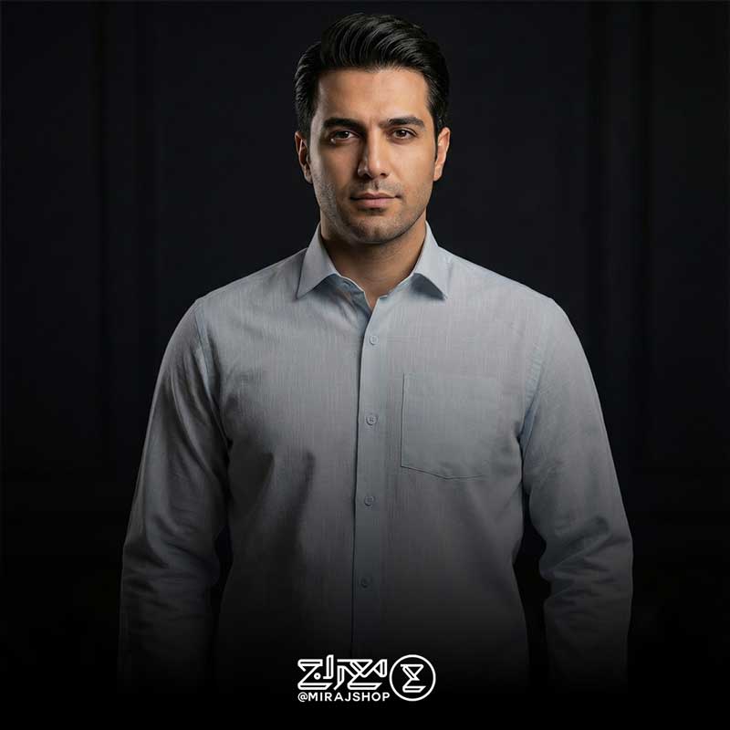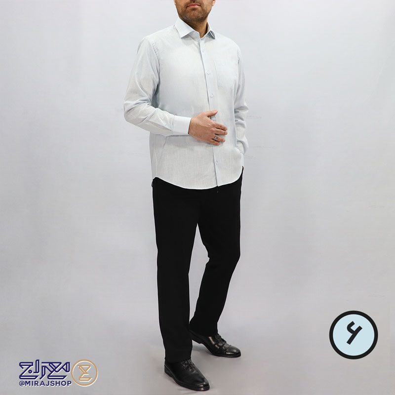 - برای استایل رسمی و مرتب، این پیراهن را با شلوار پارچهای مردانه ست کنید.
