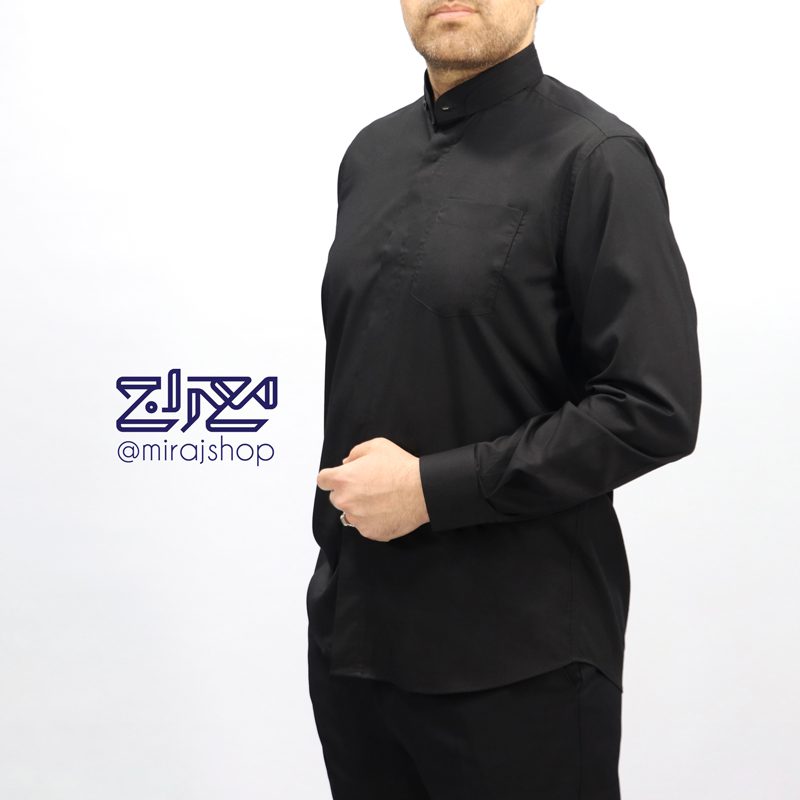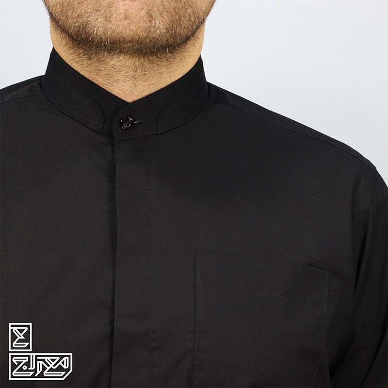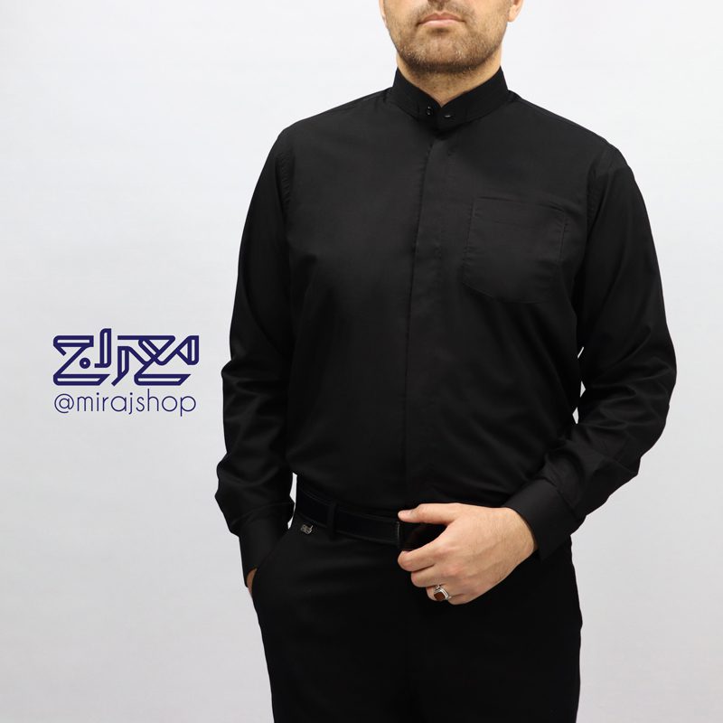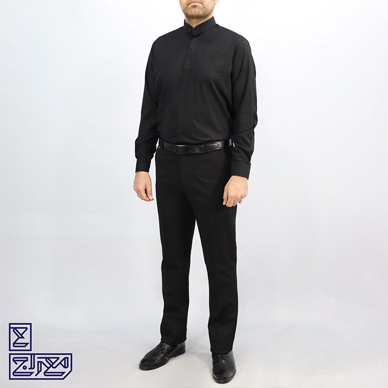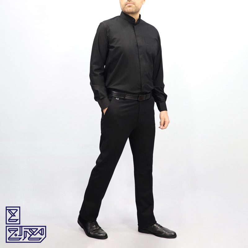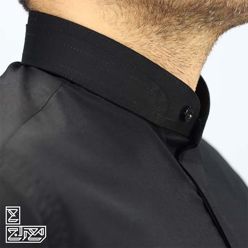 پیراهن مشکی یقه دیپلمات دوبل دکمه مخفی؛ تجلی کمال در طراحی، راحتی و استایل مردانه.