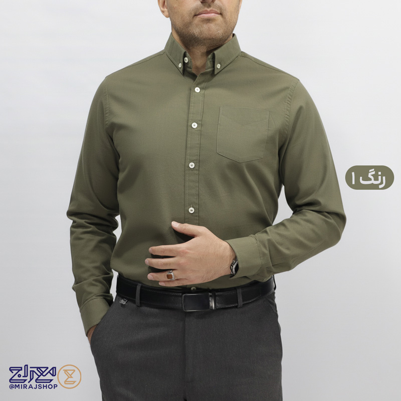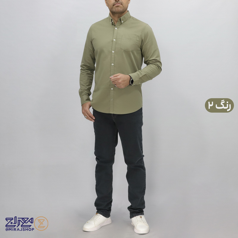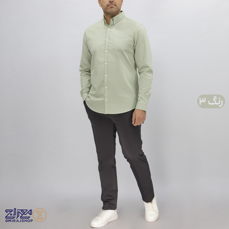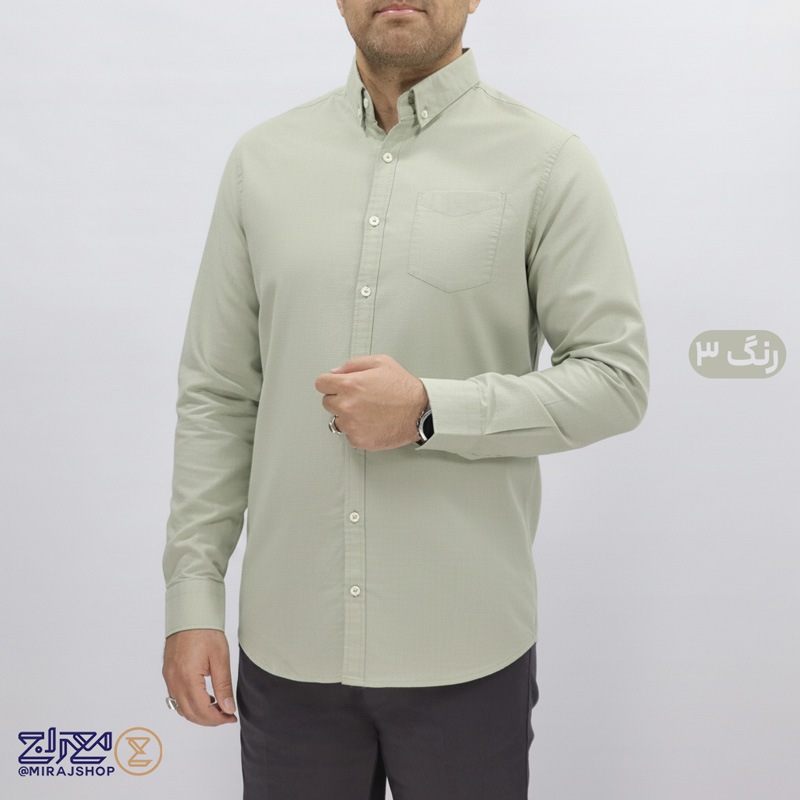 خرید آنلاین پیراهن پنبه لینن مردانه آستین بلند از پوشاک معراج؛